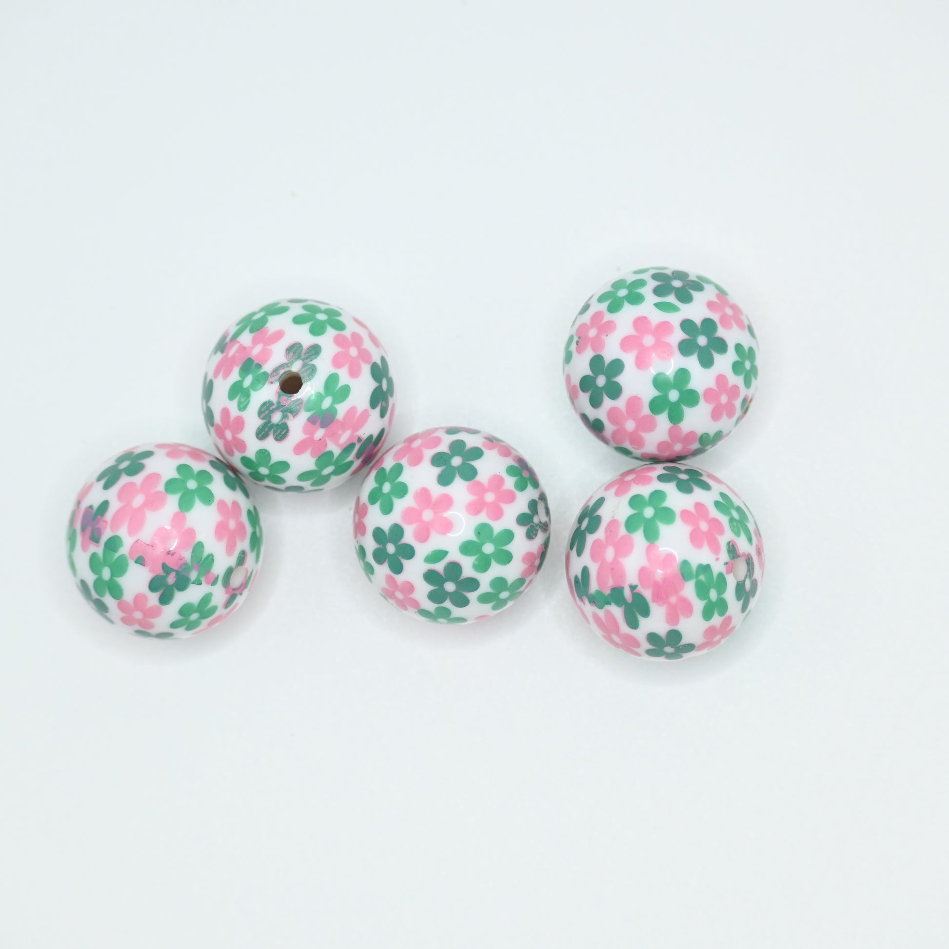 20mm Little Pink and Green Cute Flower Round Beads for Keychains